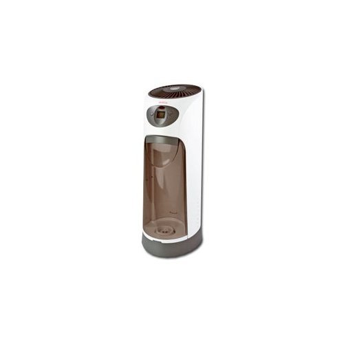 It’s big and it’s boxy, but this humidifier is designed to humidify an entire house--up to 2,300 square feet. Using an evaporative system and unheated, natural, evaporated water, it requires less energy than warm mist or steam units. You also won’t have to deal with white dust, spray, or mist on furniture or floors. Other benefits of the evaporative system include: relief from symptoms of dry skin, itchy eyes, chapped lips, and scratchy throat; it prevents plants and furniture from becoming overly dry; and reduced static electricity protects computers and electronics. This humidifier’s water bottles disperse up to 11 gallons of water per day, refilling easily and neatly in the sink via an included hose. Cleaning the rest of the appliance is just as simple: the power unit lifts off the top of the humidifier for easy cleaning and servicing, while the evaporative wick, which filters out mineral deposits, also lifts out for replacing. This humidifier also offers air cleaning capabilities and includes a two-stage replaceable filter to remove pollen, dust, smoke, and other odor-causing particles from the air. Controls are hidden behind a panel on the top of the unit. Select a preferred humidity from the humidistat dial, and this model will automatically turn itself on and off to maintain the chosen humidity level. In addition, this humidifier’s fan offers variable speeds, including a quieter setting for nighttime operation. This humidifier measures 29-5/8 by 14-7/8 by 25-3/8 inches, and comes in a fake cherry wood finish to disguise it as a console table. Bemis covers this unit under a one-year limited warranty.